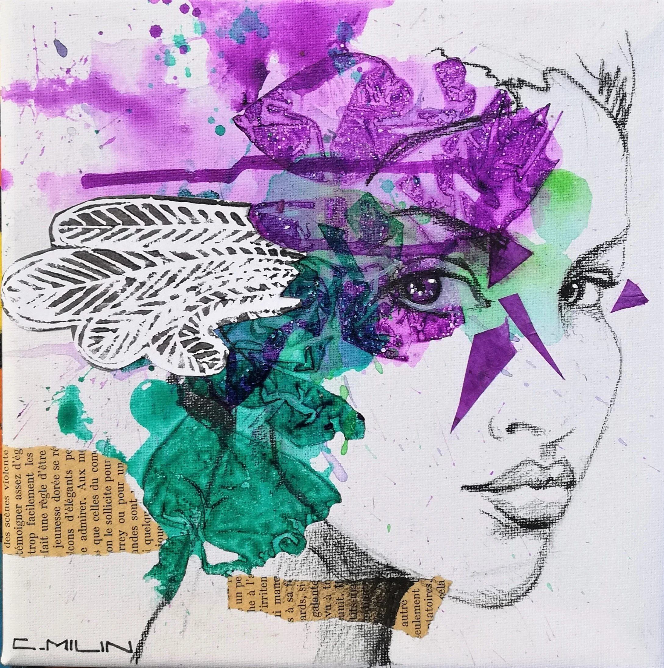 L’œuvre de Caroline Milin questionne le territoire intime féminin, la place de la femme dans son rapport au monde et aux mystères de la vie. Elle choit le portrait comme sujet central.